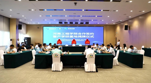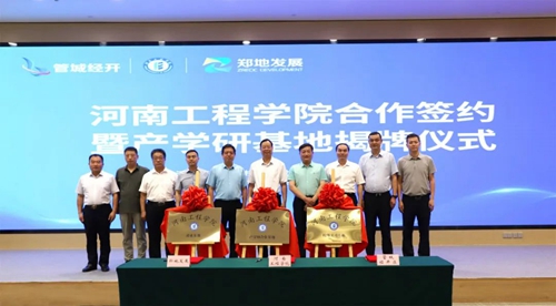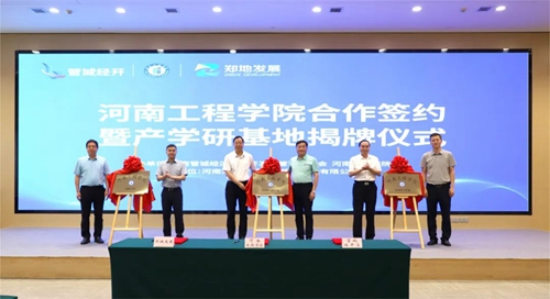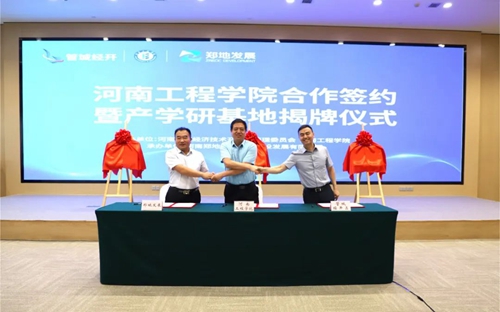 會上,河南工程學院、管城經濟技術開發(fā)區(qū)管理委員會、河南鄭地產城融合建設發(fā)展有限公司共同簽署產學研合作協議,并現場為河南工程學院校外實習基地、產學研合作基地、就業(yè)基地揭牌。