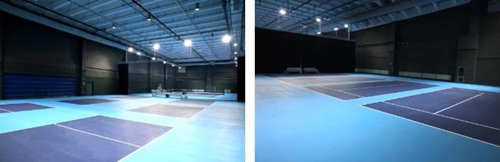 根據(jù)網(wǎng)球球小、球速快的特點(diǎn),場地照明燈光采用兩側(cè)和頂部混合布置的方式,嚴(yán)格控制照明水平,以滿足運(yùn)動(dòng)中球友們通過視覺掌握球速和運(yùn)動(dòng)方向,作出快速反應(yīng)的要求。
