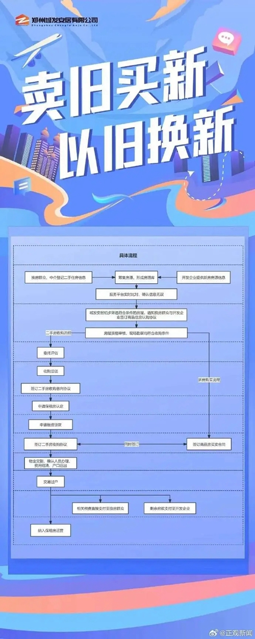 鄭州房產(chǎn)市場(chǎng)“賣舊買新、以舊換新”旨在滿足群眾改善性住房需求。具體來講,由政府指定收購(gòu)主體—鄭州城市發(fā)展集團(tuán)有限公司與具有改善需求的換房群眾進(jìn)行洽談,通過價(jià)格評(píng)估、銀行貸款等一系列工作流程,收購(gòu)群眾二手房源,為群眾購(gòu)買新房提供資金支持,暢通買賣渠道。此外,群眾也可通過市場(chǎng)化方式進(jìn)行交易。