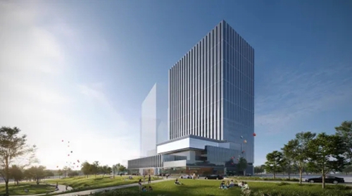 城發(fā)中心以“嵩山書頁巖”為設(shè)計(jì)理念,以中空LOW-E玻璃打造極簡(jiǎn)幕墻立面,玻璃寬約3米,隱藏式開啟窗。