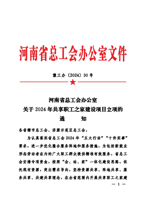 近日,河南省總工會(huì)發(fā)布《關(guān)于2024年共享職工之家建設(shè)項(xiàng)目立項(xiàng)的通知》,決定對(duì)城發(fā)金岱智慧產(chǎn)業(yè)園共享職工之家等32個(gè)共享職工之家建設(shè)項(xiàng)目進(jìn)行立項(xiàng),并對(duì)城發(fā)金岱智慧產(chǎn)業(yè)園共享職工之家給予資金補(bǔ)助,鄭州市僅有三家職工之家獲得立項(xiàng),這是城發(fā)金岱智慧產(chǎn)業(yè)園共享職工之家建設(shè)運(yùn)營后取得的第一份殊榮。