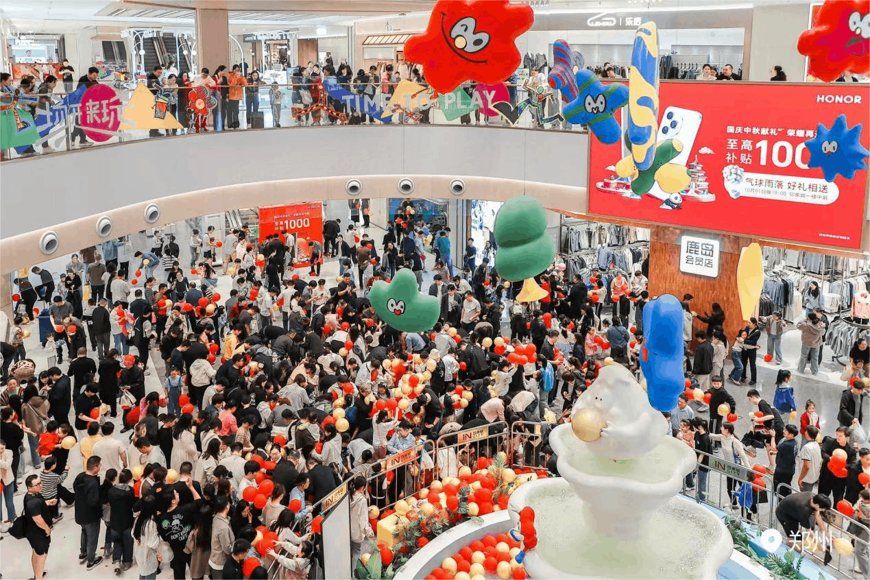 鄭州嵩南印象城推出《長(zhǎng)長(zhǎng)來(lái)相聚》及國(guó)慶消費(fèi)券派發(fā)等系列活動(dòng),以“嫦娥巡游”“海底撈月鵝”等趣味互動(dòng)活動(dòng),為周邊居民提供家門口的假日休閑選擇,廣受周邊消費(fèi)者喜愛。同時(shí),嵩南印象城通過(guò)“項(xiàng)目搭臺(tái)品牌唱戲”,聯(lián)動(dòng)場(chǎng)內(nèi)品牌舉辦國(guó)慶中秋獻(xiàn)禮氣球雨、月餅DIY等多場(chǎng)活動(dòng),拉近鄰里關(guān)系的同時(shí)激活商業(yè)活力。國(guó)慶中秋期間共計(jì)接待客流35萬(wàn)人次,銷售業(yè)績(jī)1200萬(wàn)元。