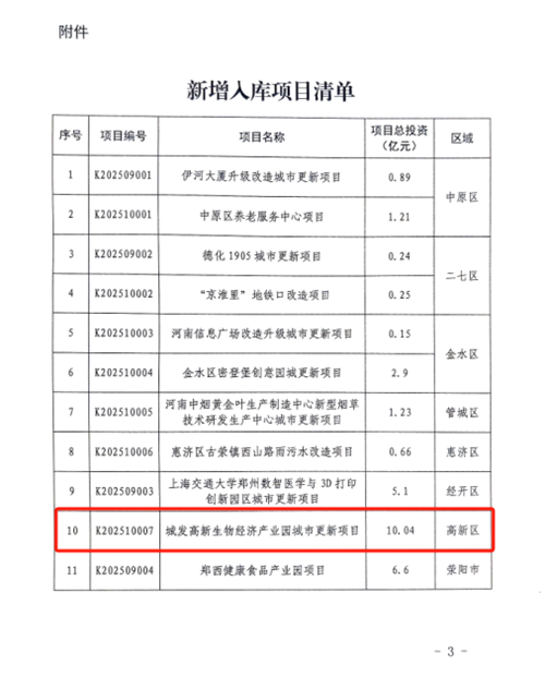 城市更新+1!城發(fā)·高新生物經(jīng)濟(jì)產(chǎn)業(yè)園成功入庫(kù)