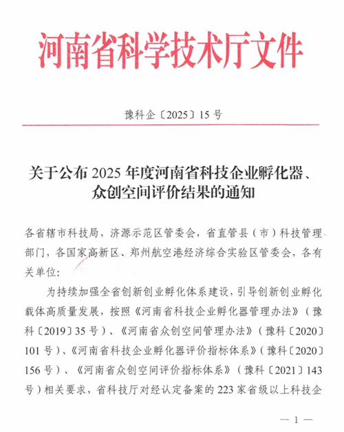 近日,河南省科學(xué)技術(shù)廳正式發(fā)布《關(guān)于公布2025年度河南省科技企業(yè)孵化器眾創(chuàng)空間評價結(jié)果的通知》(豫科企〔2025〕15號),鄭州城發(fā)集團(tuán)金岱智慧產(chǎn)業(yè)園憑借扎實(shí)的孵化服務(wù)能力、突出的創(chuàng)新培育成效,在全省223家省級以上科技企業(yè)孵化器的嚴(yán)格考評中脫穎而出,榮獲最高考核等級——“優(yōu)秀(A類)”!